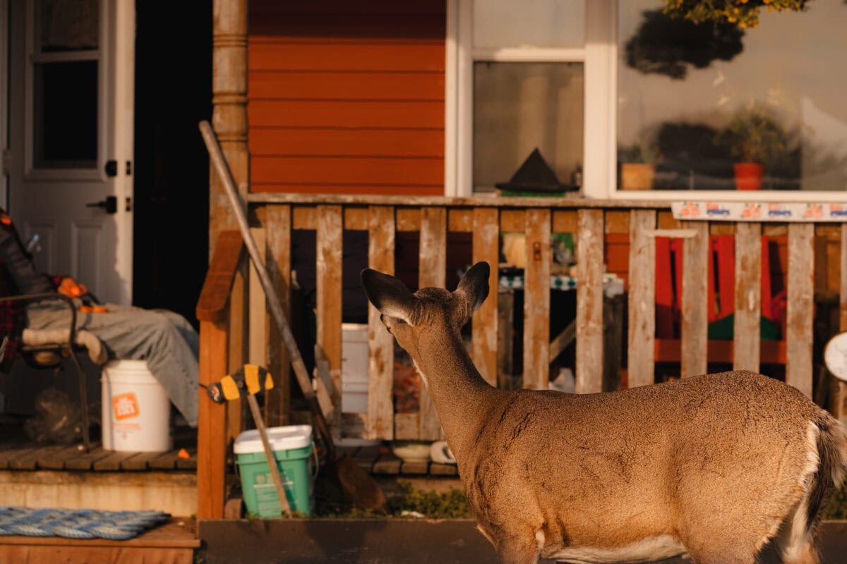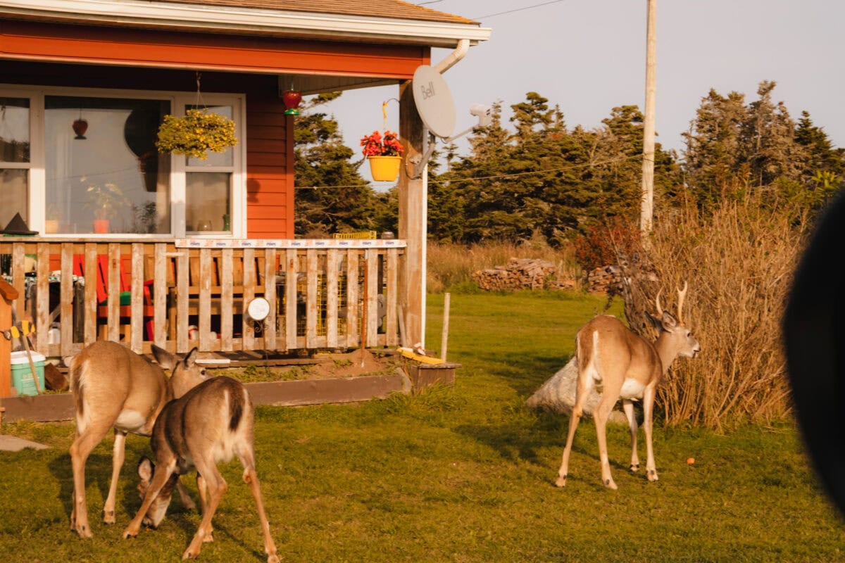 Füttern aus dem Auto heraus ist allerdings verboten, wohl, damit sich die Tiere nicht an Autos gewöhnen und die Unfallgefahr steigt. Offen und entspannt wie die Bewohner Nova Scotias aber sind, dauerte es nicht lange und wir fanden uns bei einem lustigen Plausch auf der Veranda eines Ehepaares wieder, vor uns ein Sack voll Möhren und umzingelt von wilden Rehen.